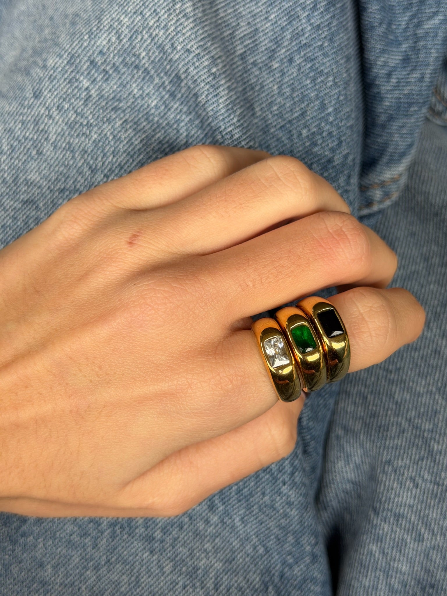 Todos nuestros anillos están fabricados con materiales de alta calidad, como latón o acero inoxidable con baño de oro de 18k, y piedras naturales auténticas. Cuidándolos bien, mantienen su brillo y color durante mucho tiempo.