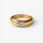 El Anillo Eclipse es una pieza de líneas contundentes y diseño minimal, protagonizada por una circonita blanco de corte geométrico que aporta fuerza y carácter.