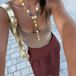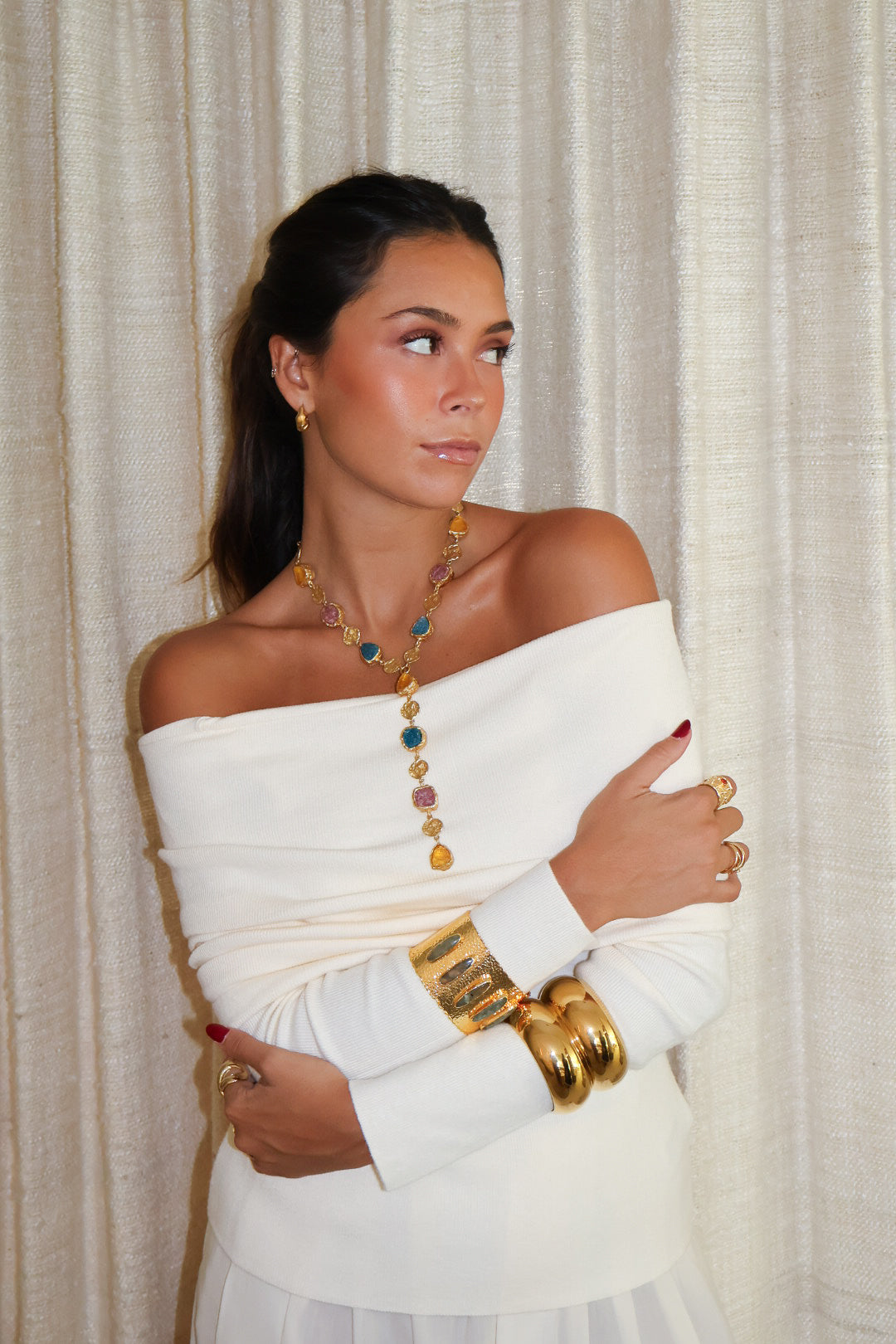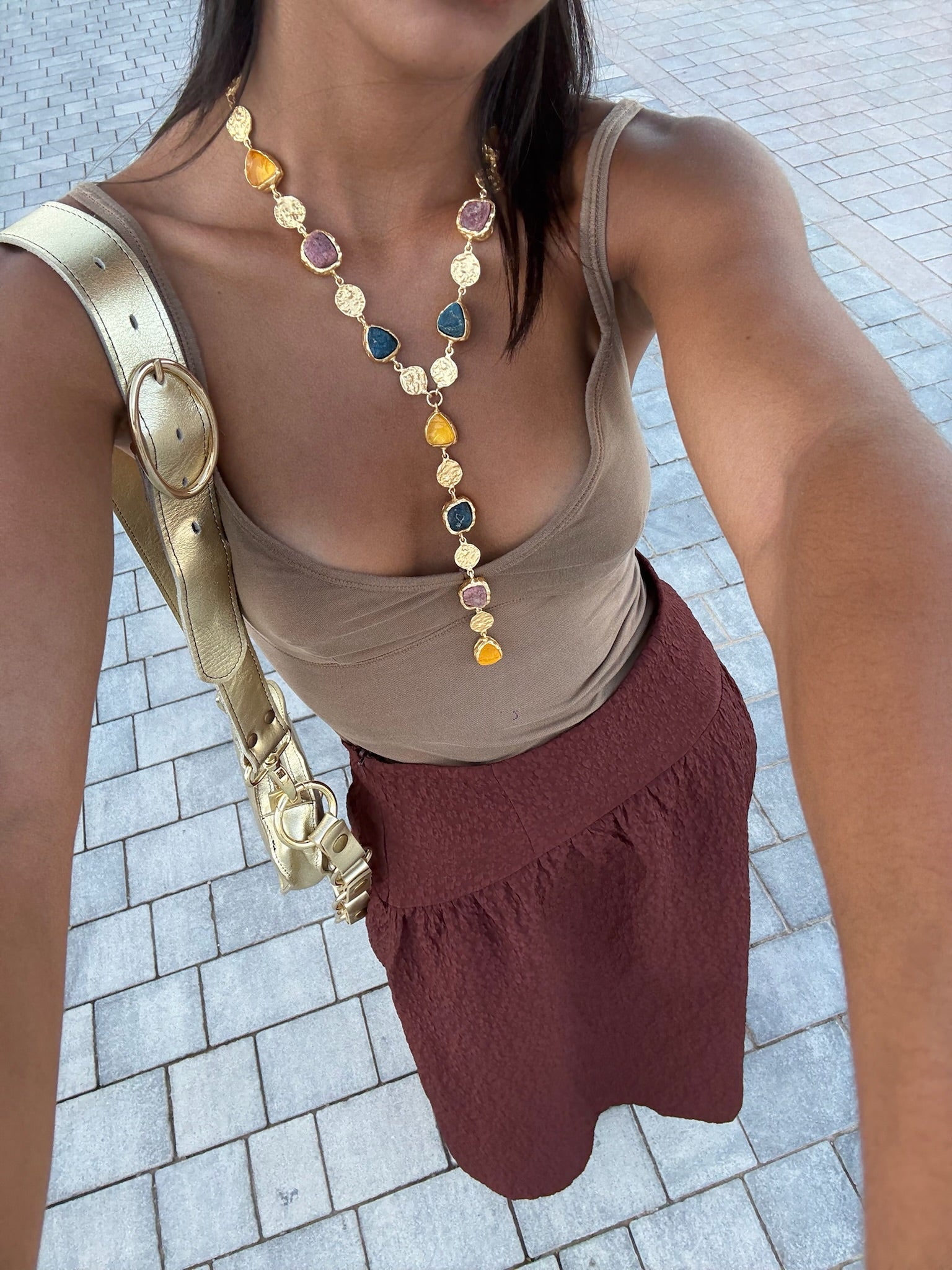 Nuestro collar más deseado. Hecho a mano con latón bañado en oro y piedras naturales en su estado original.