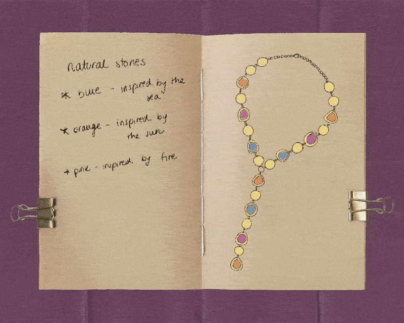 • Piedras naturales: Turmalina rosa,  Apatita azul y Cuarzo limón