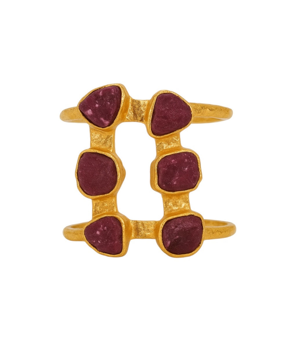Usamos materiales resistentes y de calidad: base de latón o acero inoxidable con baño de oro de 18k y piedras naturales auténticas. Cada pieza se revisa una a una antes de enviarse para asegurar el acabado perfecto.