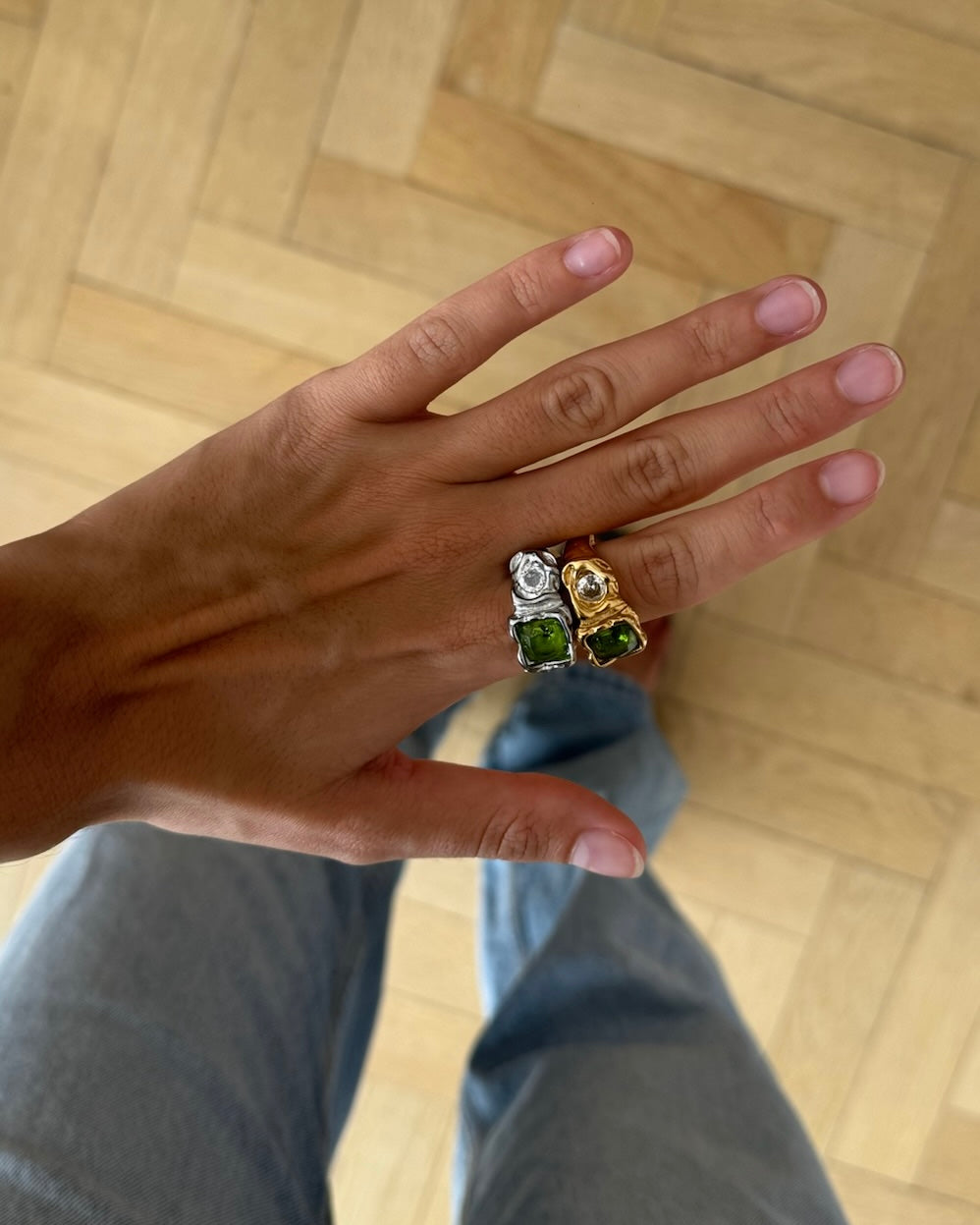 Todos nuestros anillos están fabricados con materiales de alta calidad, como latón o acero inoxidable con baño de oro de 18k, y piedras naturales auténticas. Cuidándolos bien, mantienen su brillo y color durante mucho tiempo.