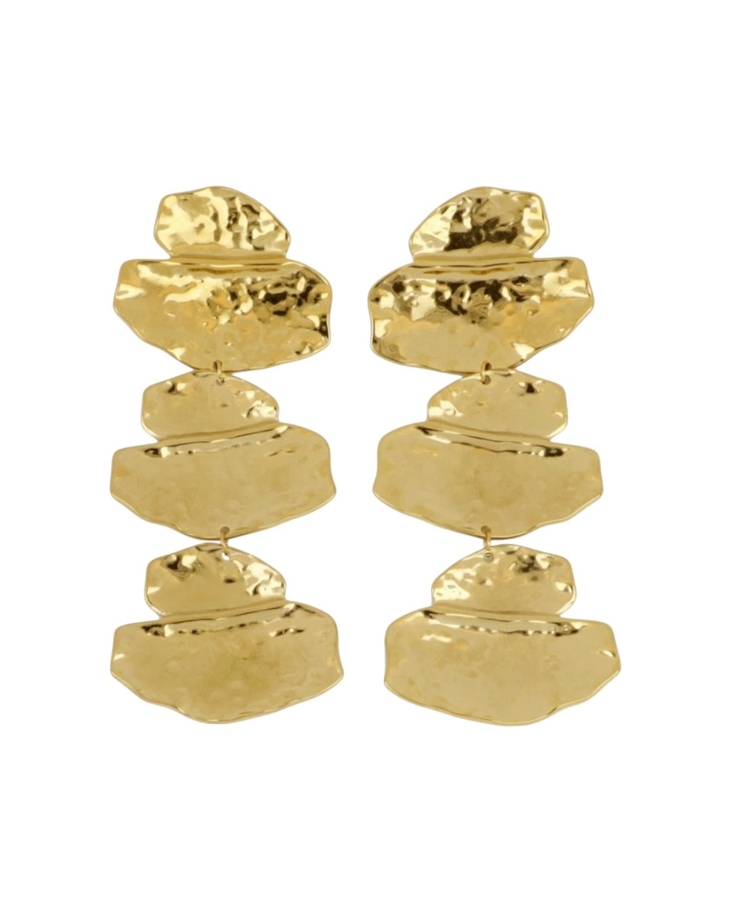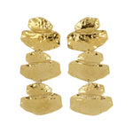 Pendientes hechos a mano en acero inoxidable resistente al agua, compuestos por tres formas irregulares inspiradas en las texturas de la superficie lunar.