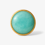 Anillo ajustable a todas las tallas, hecho a mano en latón bañado en oro de 18k con piedra redonda natural en tono azul claro vibrante.