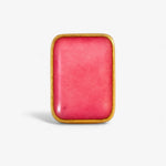 Anillo ajustable a todas las tallas, hecho a mano en latón bañado en oro de 18k con piedra rectangular natural en tono rosa vibrante.