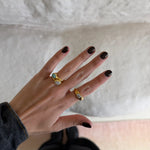 Todos nuestros anillos están fabricados con materiales de alta calidad, como latón o acero inoxidable con baño de oro de 18k, y piedras naturales auténticas. Cuidándolos bien, mantienen su brillo y color durante mucho tiempo.