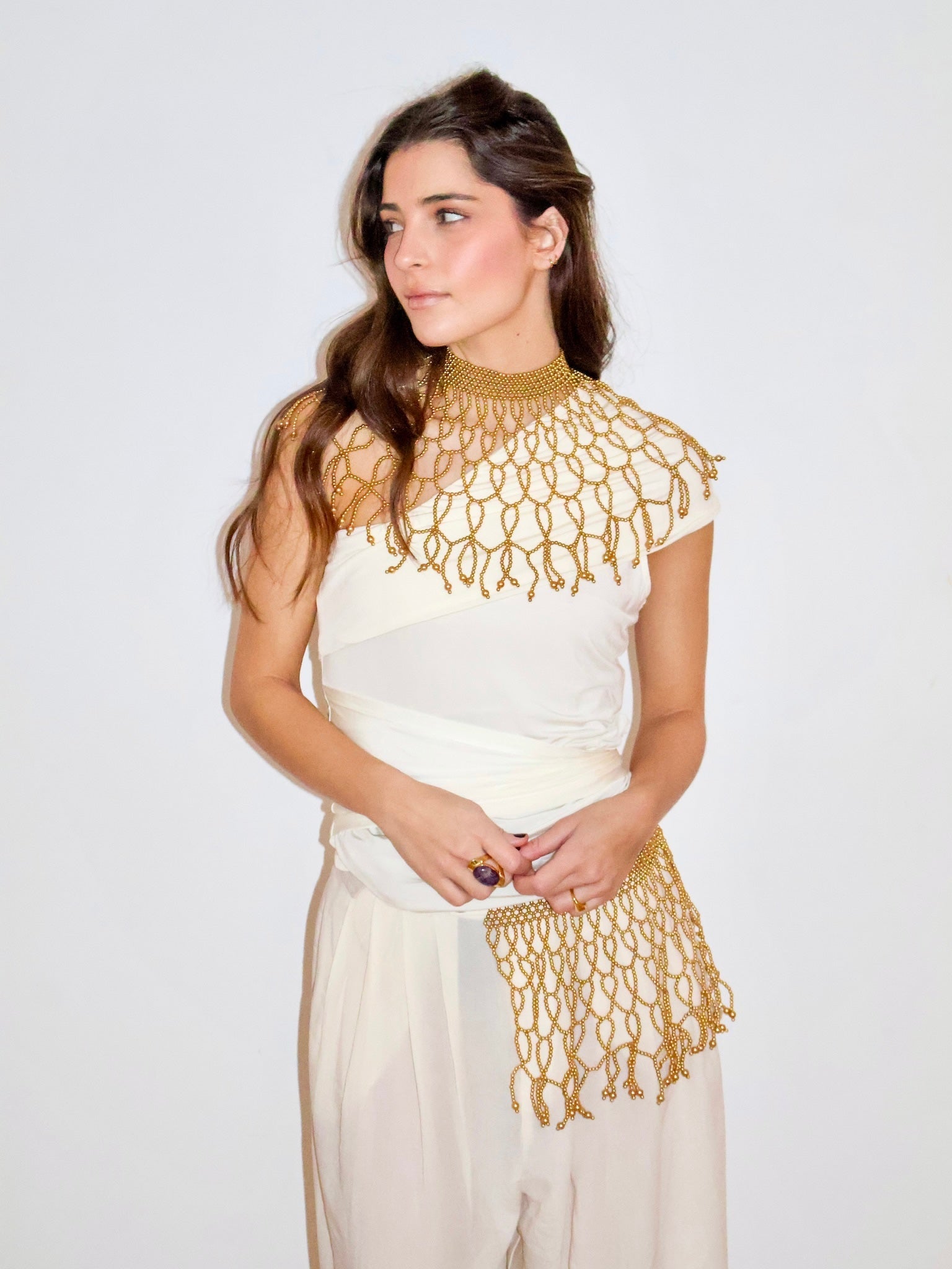Incluye una cadena extra que permite transformarlo y llevarlo también como cinturón, haciendo de esta joya una pieza versátil, pensada para adaptarse a diferentes estilos y momentos.