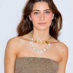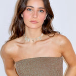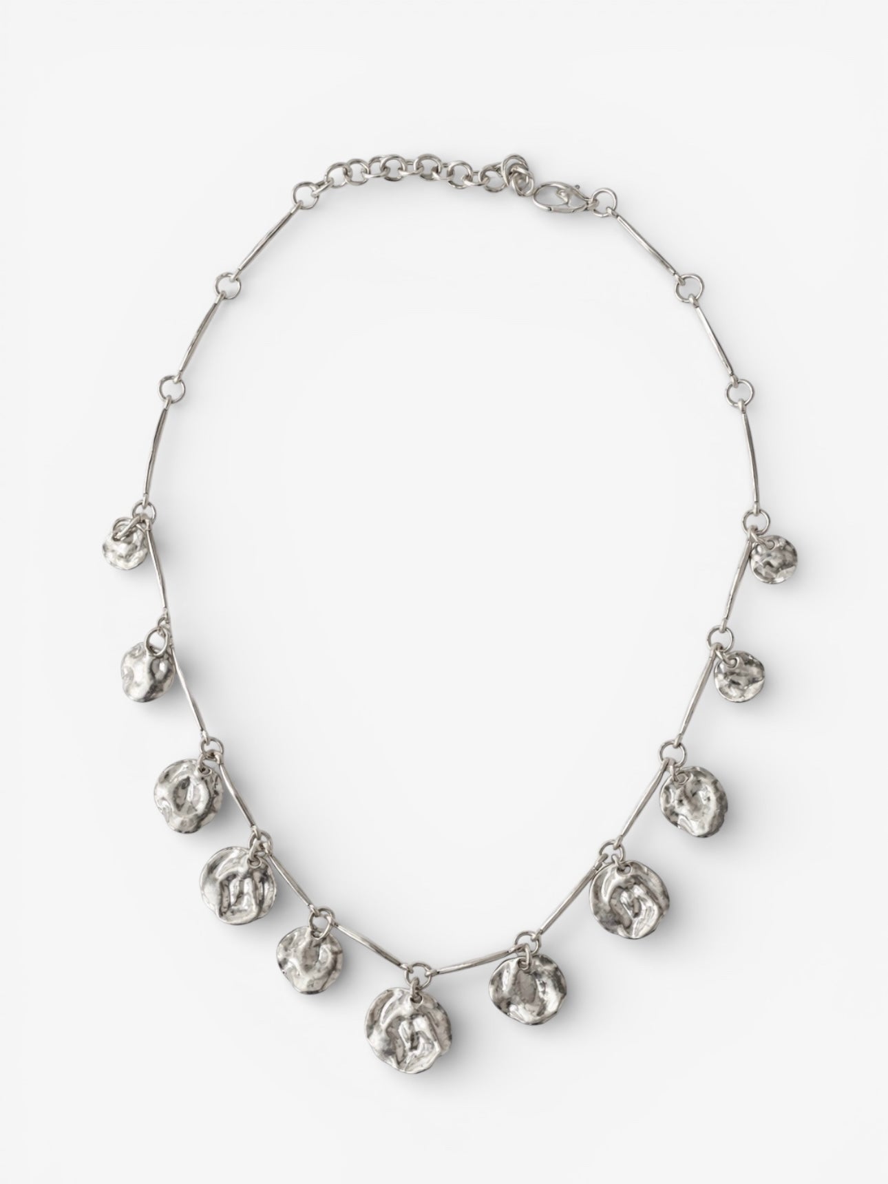 El Choker Satélite es una pieza statement inspirada en los pequeños cuerpos que orbitan y reflejan la luz. Creado para combinar con la cadena doble satélite.