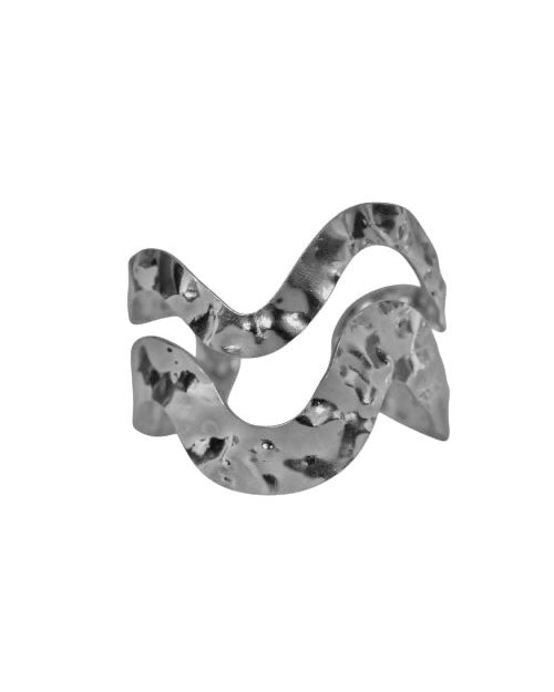 Brazalete ajustable a todas las tallas hecho en acero inoxidable con diseño ondulado y textura martelé.