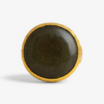 Anillo ajustable a todas las tallas, hecho a mano en latón bañado en oro de 18k con piedra redonda natural en tono marrón.